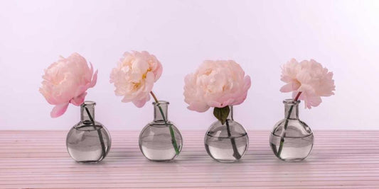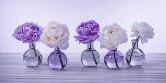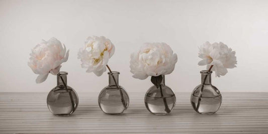 Peonies in glass bottles White Modern Wood Framed Art Print with Double Matting by Frank, Assaf