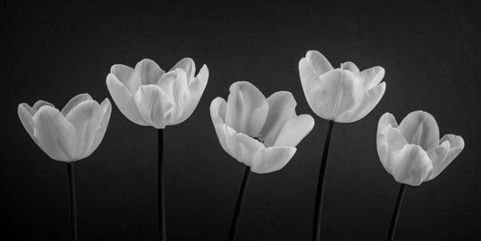 Tulips, black and white White Modern Wood Framed Art Print with Double Matting by Frank, Assaf