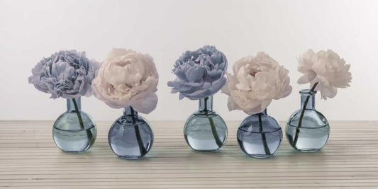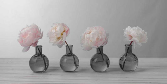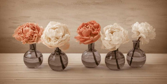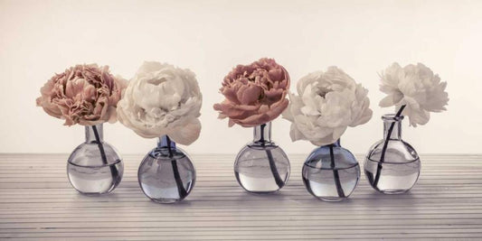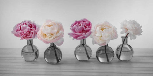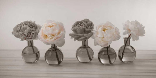 Peonies in glass bottles White Modern Wood Framed Art Print with Double Matting by Frank, Assaf