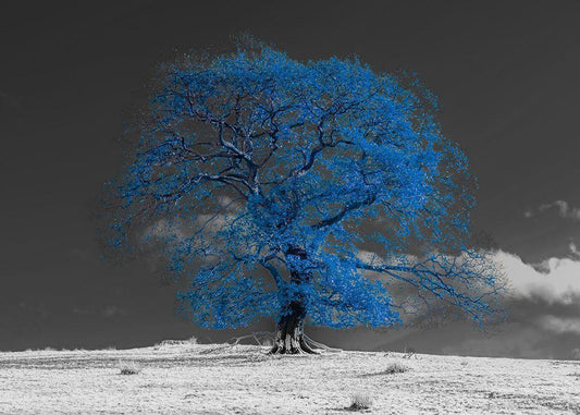 Tree on a hill-blue White Modern Wood Framed Art Print with Double Matting by Frank, Assaf