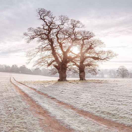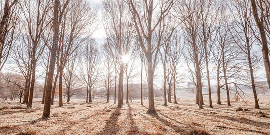 Sun shining through trees White Modern Wood Framed Art Print with Double Matting by Frank, Assaf