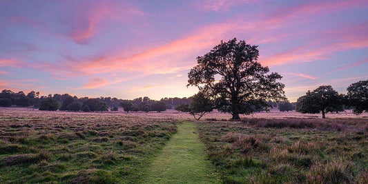 Tree in a filed at sunrise White Modern Wood Framed Art Print with Double Matting by Frank, Assaf