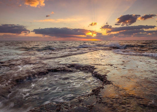 Evening view of tranquil beach White Modern Wood Framed Art Print with Double Matting by Frank, Assaf