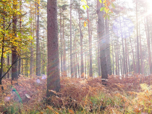 Tall trees in Autumn forest White Modern Wood Framed Art Print with Double Matting by Frank, Assaf