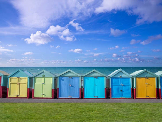 Colorful beach huts in a row White Modern Wood Framed Art Print with Double Matting by Frank, Assaf