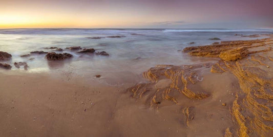 Golden sunset on beach White Modern Wood Framed Art Print with Double Matting by Frank, Assaf