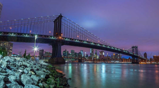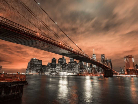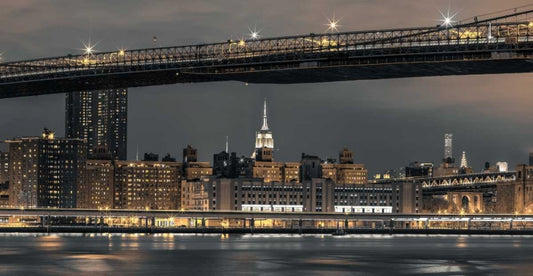 Manhattan bridge and New York city skyline White Modern Wood Framed Art Print with Double Matting by Frank, Assaf