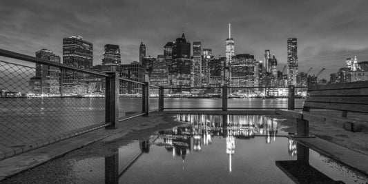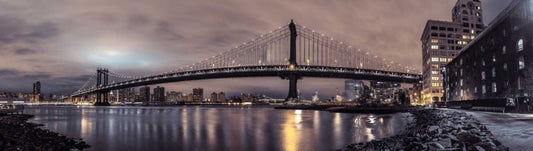 Manhattan bridge and New York city skyline, FTBR-1837 White Modern Wood Framed Art Print with Double Matting by Frank, Assaf