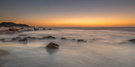 Sunset on rocky beach with colorful sky White Modern Wood Framed Art Print with Double Matting by Frank, Assaf