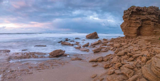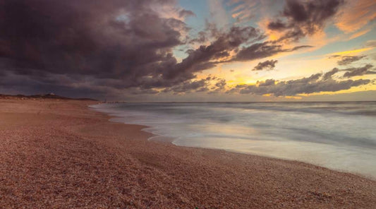 Beautiful beach with cloudscape White Modern Wood Framed Art Print with Double Matting by Frank, Assaf