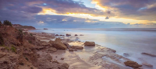 Tranquil beach with cloudscapes White Modern Wood Framed Art Print with Double Matting by Frank, Assaf
