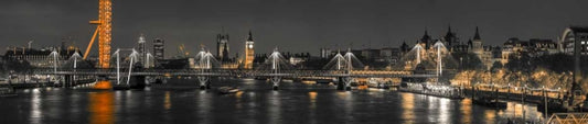 Panoramic view of London skyline over River Thames White Modern Wood Framed Art Print with Double Matting by Frank, Assaf