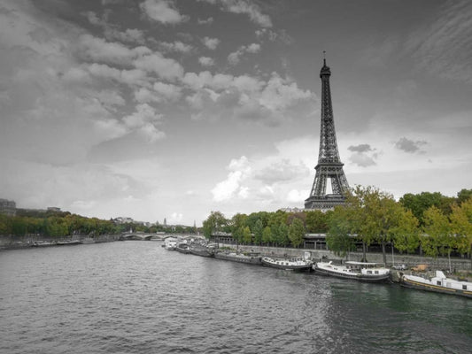 River Seine and Eiffel tower, Paris, France White Modern Wood Framed Art Print with Double Matting by Frank, Assaf