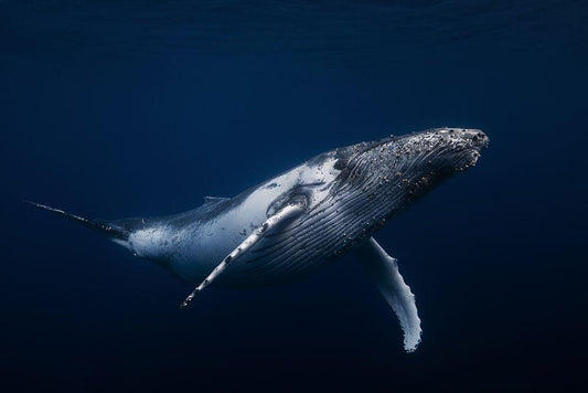 Humpback whale in blue White Modern Wood Framed Art Print with Double Matting by Gabriel, Barathieu