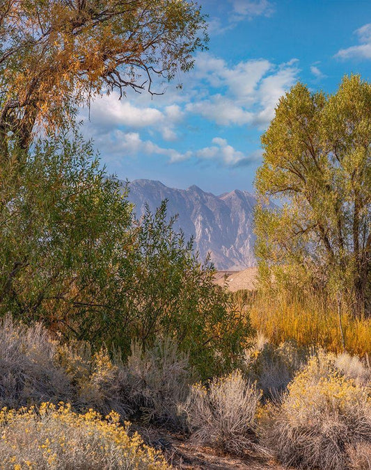 Lone Pine and Cottonwood Tree-Sierra Nevada-CA White Modern Wood Framed Art Print with Double Matting by Fitzharris, Tim