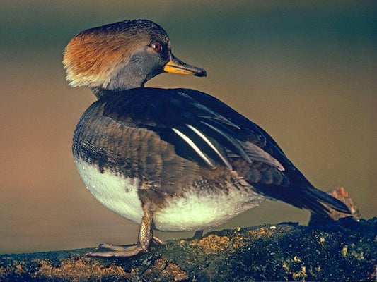 Hooded Merganser Female White Modern Wood Framed Art Print with Double Matting by Fitzharris, Tim