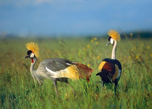 Crowned Cranes-Kenya White Modern Wood Framed Art Print with Double Matting by Fitzharris, Tim