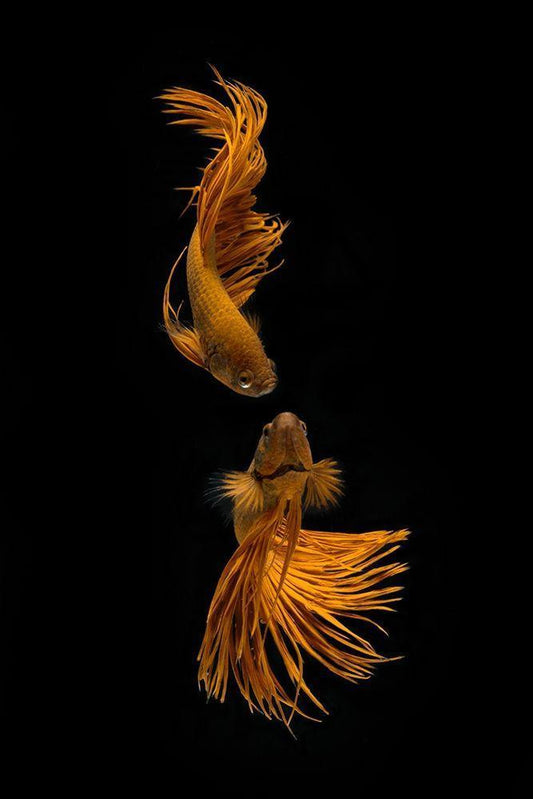 Love Story of the Golden Fish White Modern Wood Framed Art Print with Double Matting by Rahayu, Ganjar