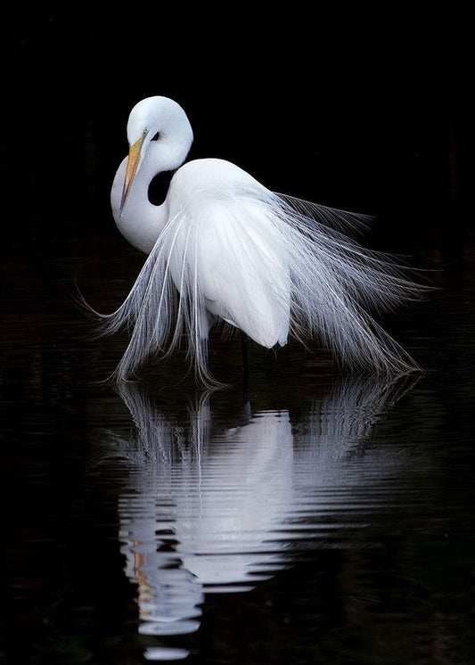 Egret White Modern Wood Framed Art Print with Double Matting by Zhu, Hua