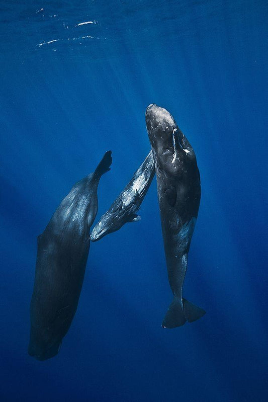 Sperm whale family White Modern Wood Framed Art Print with Double Matting by Gabriel, Barathieu