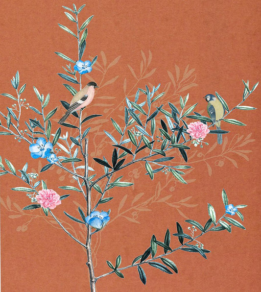 Bird and Branch II White Modern Wood Framed Art Print with Double Matting by Smith, Karen