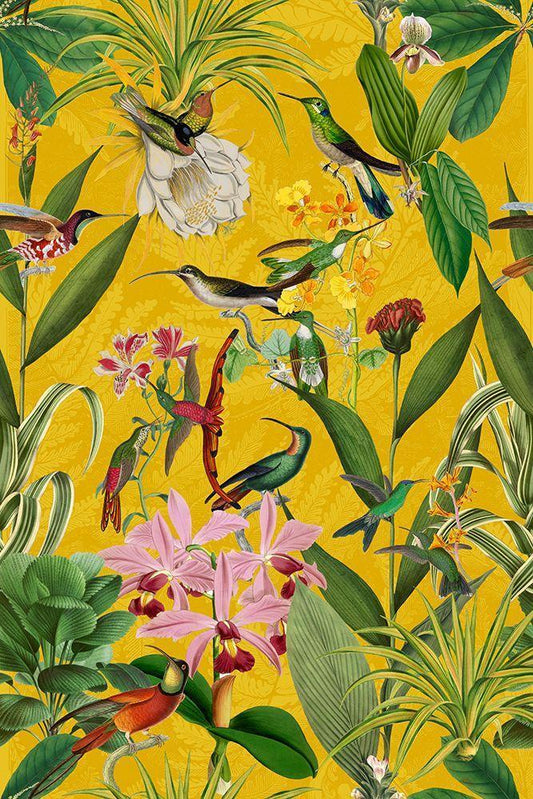 Exotic Paradise Jungle Birds White Modern Wood Framed Art Print with Double Matting by Haase, Andrea
