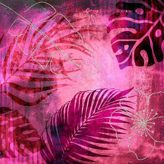 Pink Summer Jungle White Modern Wood Framed Art Print with Double Matting by Haase, Andrea