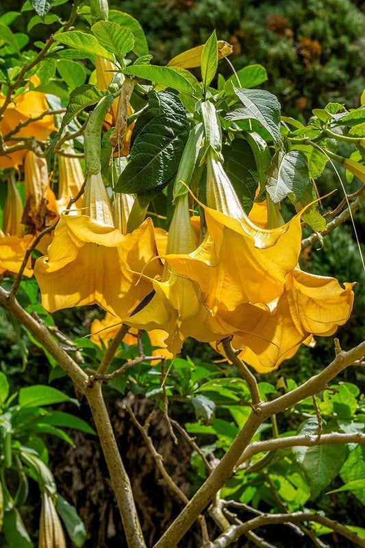 Yellow Angels Trumpet White Modern Wood Framed Art Print with Double Matting by Engelbrecht, Lisa S.