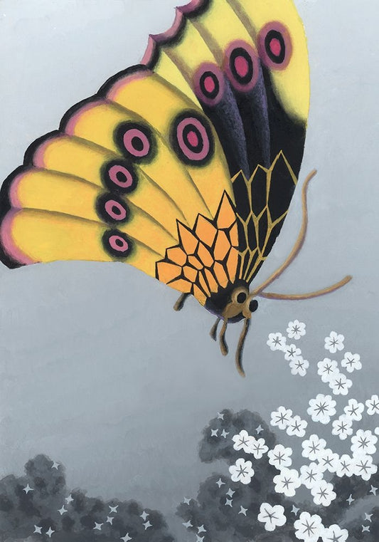 Vintage Butterfly White Modern Wood Framed Art Print with Double Matting by Alpenglow Workshop