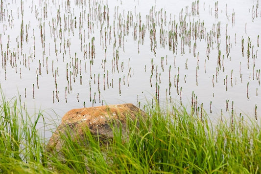 Plant and rock in the glacier river-Yttygran Island-Bering Sea-Russia Far East White Modern Wood Framed Art Print with Double Matting by Su, Keren