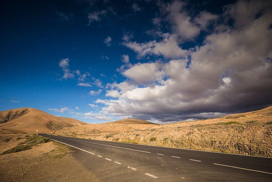 Canary Islands-Fuerteventura Island-Pajara-desert landscape along the FV-605 highway White Modern Wood Framed Art Print with Double Matting by Bibikow, Walter