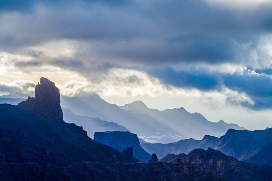 Spain-Canary Islands-Gran Canaria Island-Tejeda-mountain landscape with Roque Bentayga White Modern Wood Framed Art Print with Double Matting by Bibikow, Walter