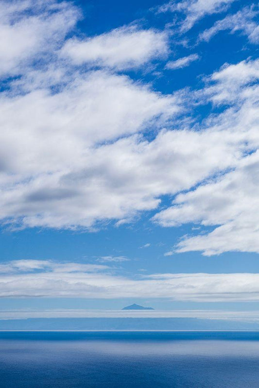 Canary Islands-La Palma Island-Villa de Mazo-view towards El Teide Mountain on Tenerife Island White Modern Wood Framed Art Print with Double Matting by Bibikow, Walter