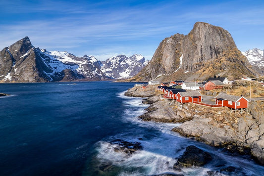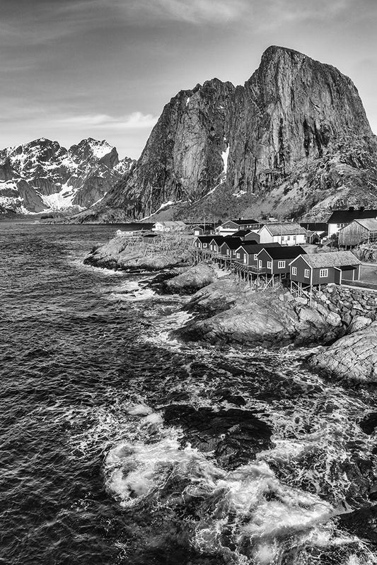 Norway- Lofoten Islands. Hamnoy (Reine)- Red Rorbuer (fishermens cottages) White Modern Wood Framed Art Print with Double Matting by Looney, Hollice