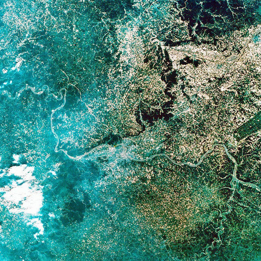 The Meandering Ohio River White Modern Wood Framed Art Print with Double Matting by NASA