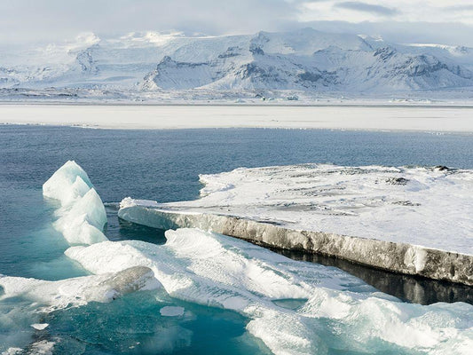 Glacial lagoon Jokulsarlon at Breidamerkurjokullin National Park Vatnajokull during winter White Modern Wood Framed Art Print with Double Matting by Zwick, Martin