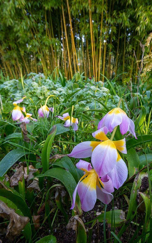 France-Giverny Spring flowers and bamboo forest in Monets Garden White Modern Wood Framed Art Print with Double Matting by Jaynes Gallery