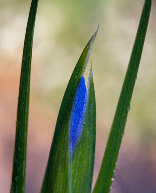 France-Giverny Close-up of emerging purple iris White Modern Wood Framed Art Print with Double Matting by Jaynes Gallery