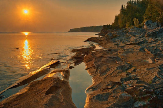 Canada-Ontario-Bruce Peninsula National Park Sunset on limestone rock White Modern Wood Framed Art Print with Double Matting by Jaynes Gallery