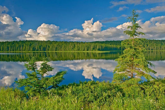Canada-Ontario Clouds reflected in Trail Lake White Modern Wood Framed Art Print with Double Matting by Jaynes Gallery
