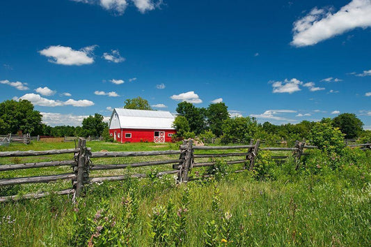 Canada-Ontario-Limoges Red barn and wooden fence White Modern Wood Framed Art Print with Double Matting by Jaynes Gallery