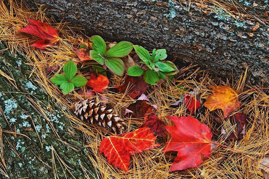 Canada-Ontario-Tyson Lake Vegetation and log on forest floor White Modern Wood Framed Art Print with Double Matting by Jaynes Gallery
