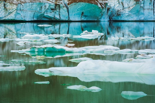 Icebergs on glacial meltwater under Mount Edith Cavell-Jasper National Park-Alberta-Canada White Modern Wood Framed Art Print with Double Matting by Bishop, Russ