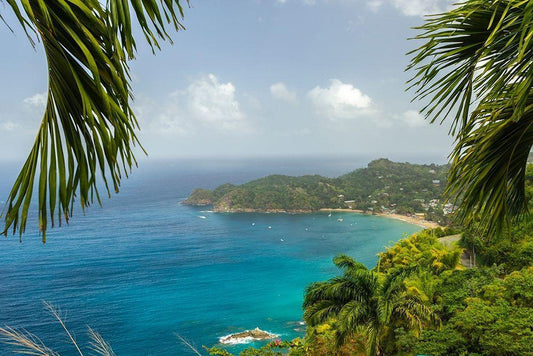 Caribbean-Tobago Parlatuvier Bay and beach landscape White Modern Wood Framed Art Print with Double Matting by Jaynes Gallery