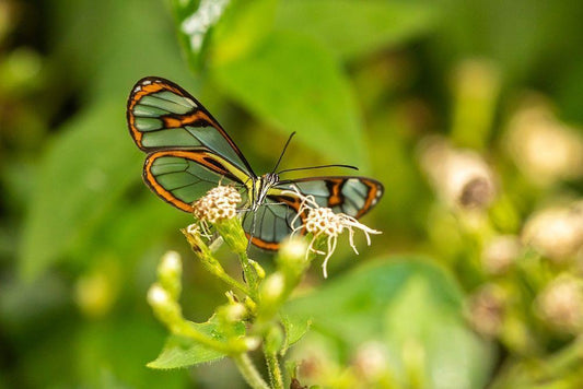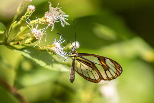Caribbean-Trinidad-Asa Wright Nature Center Agnosia clearwing butterfly feeding White Modern Wood Framed Art Print with Double Matting by Jaynes Gallery