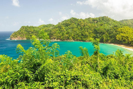 Caribbean-Tobago Ocean cove and jungle landscape White Modern Wood Framed Art Print with Double Matting by Jaynes Gallery