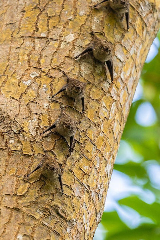Caribbean-Trinidad-Caroni Swamp Bats lined up on tree White Modern Wood Framed Art Print with Double Matting by Jaynes Gallery