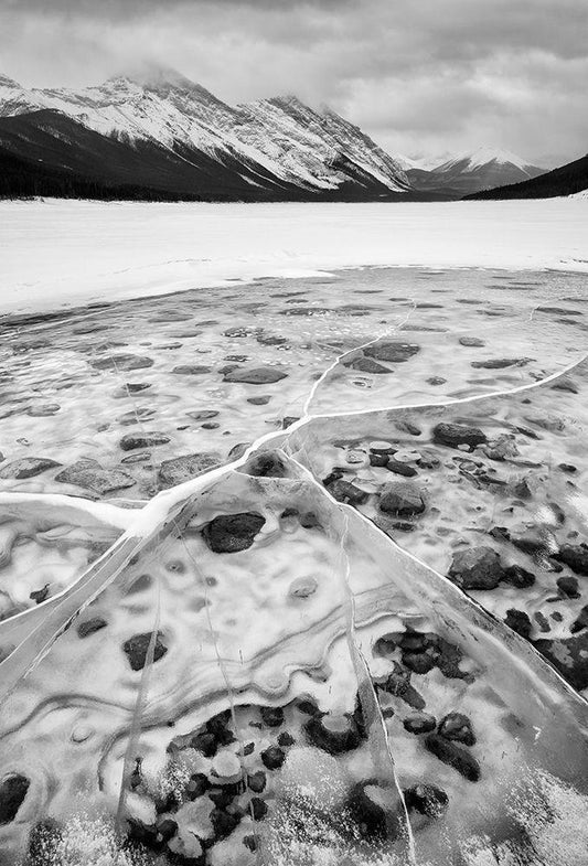 Canada-Alberta-Canmore-Spray Valley Provincial Park-Ice abstract at Spray Lakes White Modern Wood Framed Art Print with Double Matting by Collins, Ann