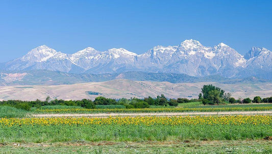 Landscape in the foothills of the Fergana mountain range White Modern Wood Framed Art Print with Double Matting by Zwick, Martin