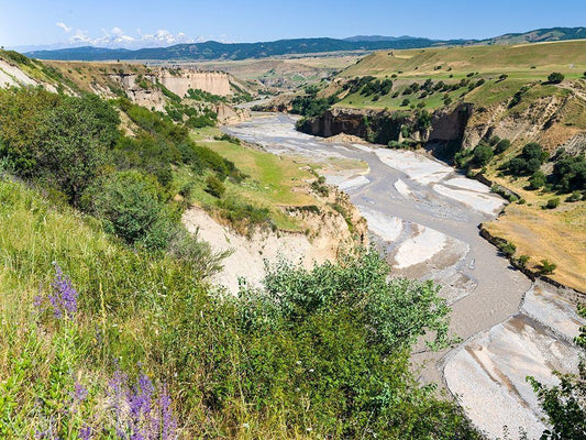 Pandzhkhok-Sughd-Tajikistan Canyon in the mountains of Tajikistan White Modern Wood Framed Art Print with Double Matting by Wilson, Emily M.
